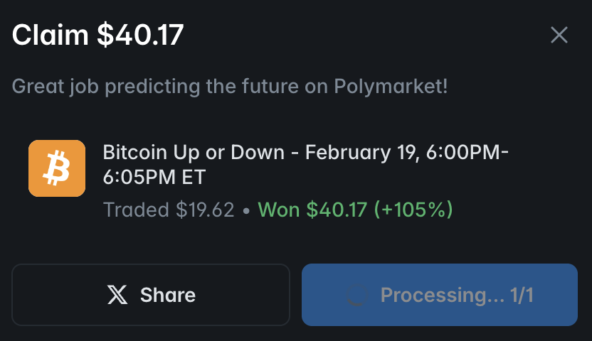 Automated BTC 5-minute Up/Down prediction market bot. Momentum entries, late-round sniping, adaptive risk management. Set it up, let it run.